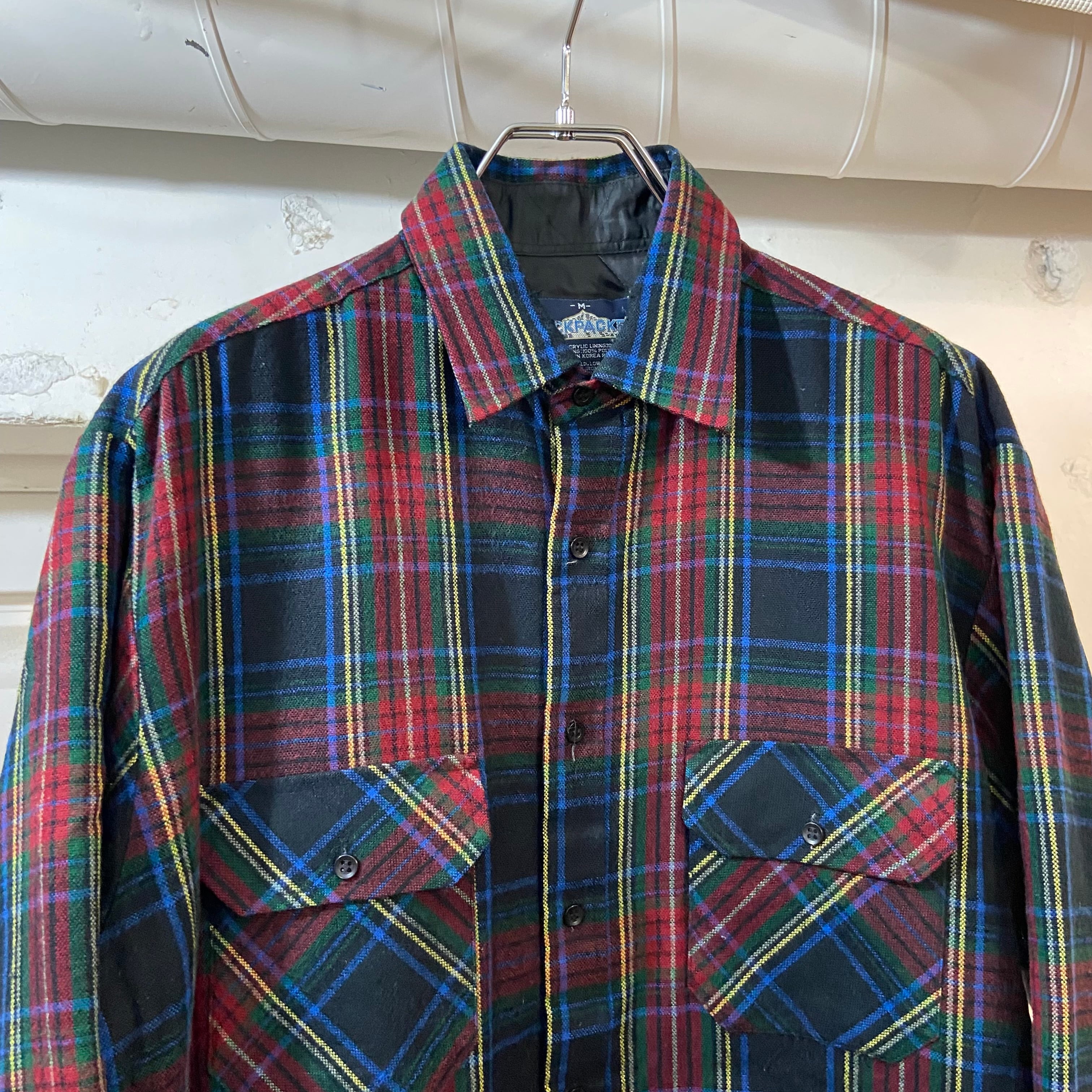BACKPACKER / 90s〜 Quilting Liner Plaid Acrylic Shirts サイズM
