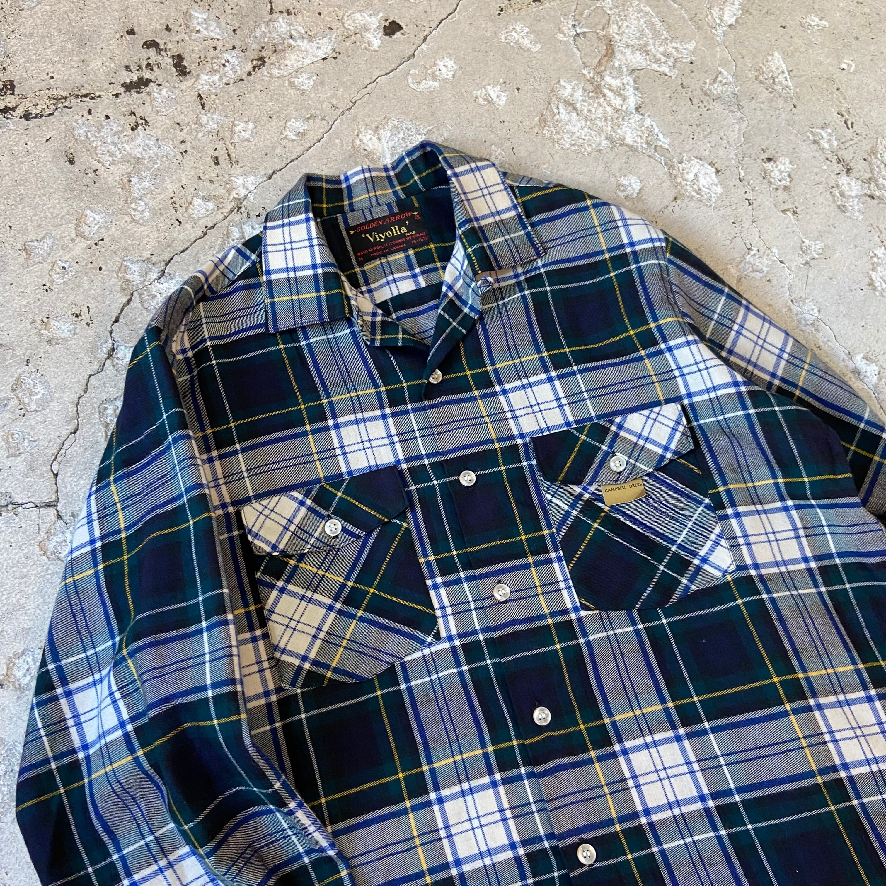 Golden Arrow / アロー 60s〜 MADE IN CANADA Viyella Open Collar Plaid Shirts サイズM