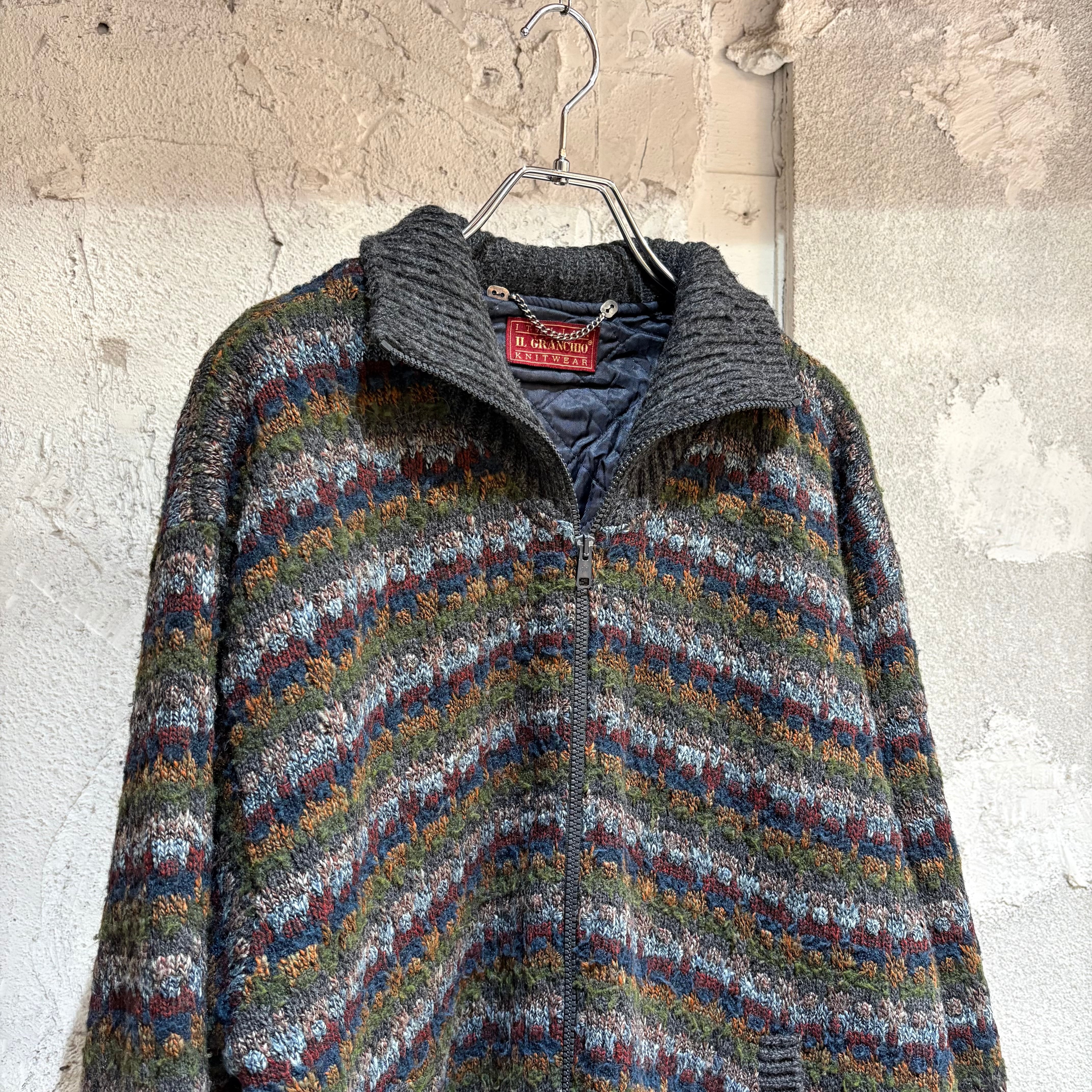 IL GRANCHIO All Over Pattern Zip Knit Cardigan