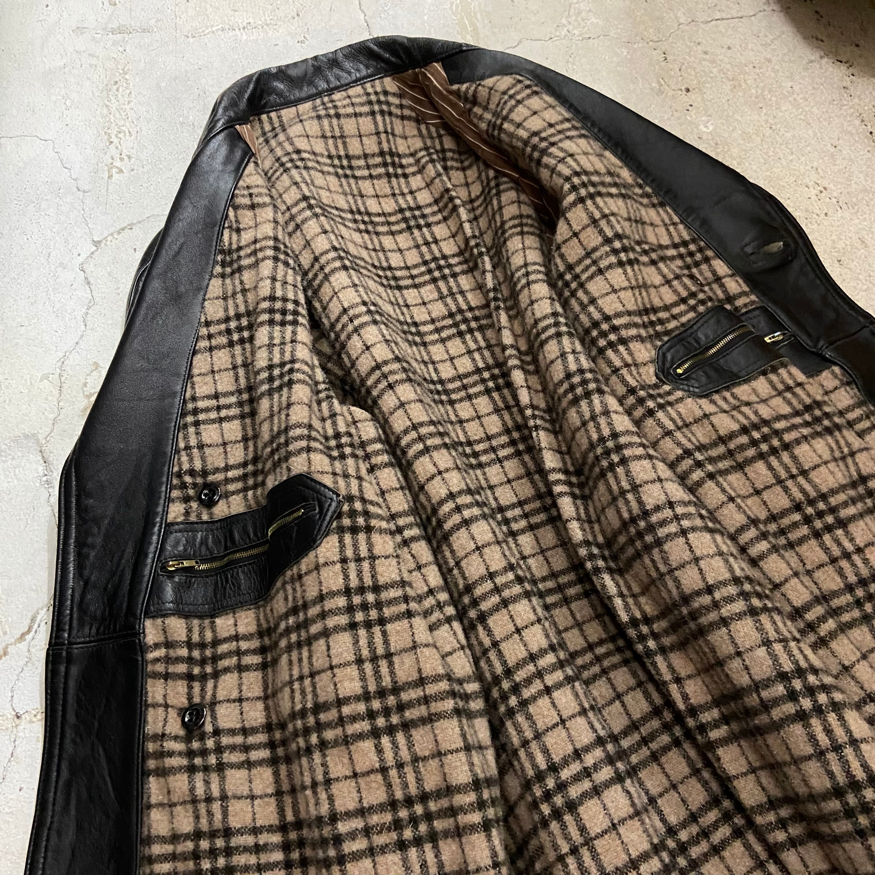UNKNOWN / Double Breasted Leather Car Coat